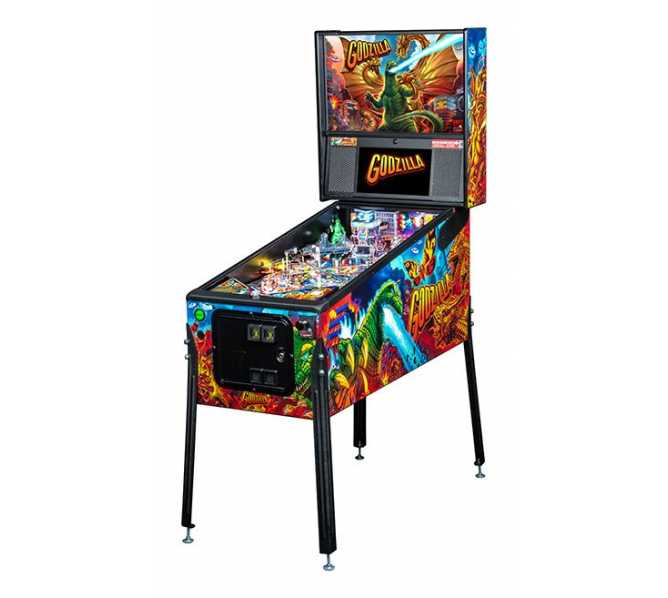 In this monster-packed pinball adventure, players become Godzilla! The evil aliens, the Xiliens, use mind control rays to take control of the monsters King Ghidorah, Gigan, Megalon, Ebirah, and Titanosaurus. The Xiliens are demanding all of Earth’s resources. Godzilla and its allies, Mothra, Rodan, and Anguirus, battle the Xilien invasion with the goal of conquering Mechagodzilla to become King of the Monsters! The Premium model features a motorized three-bank target set which rotates to reveal a spinner and jump ramp. Players will engage the Kaiju in battle by launching pinballs with the jump ramp and bashing the magnetic ball catch on its chest to start Mechagodzilla multiball.