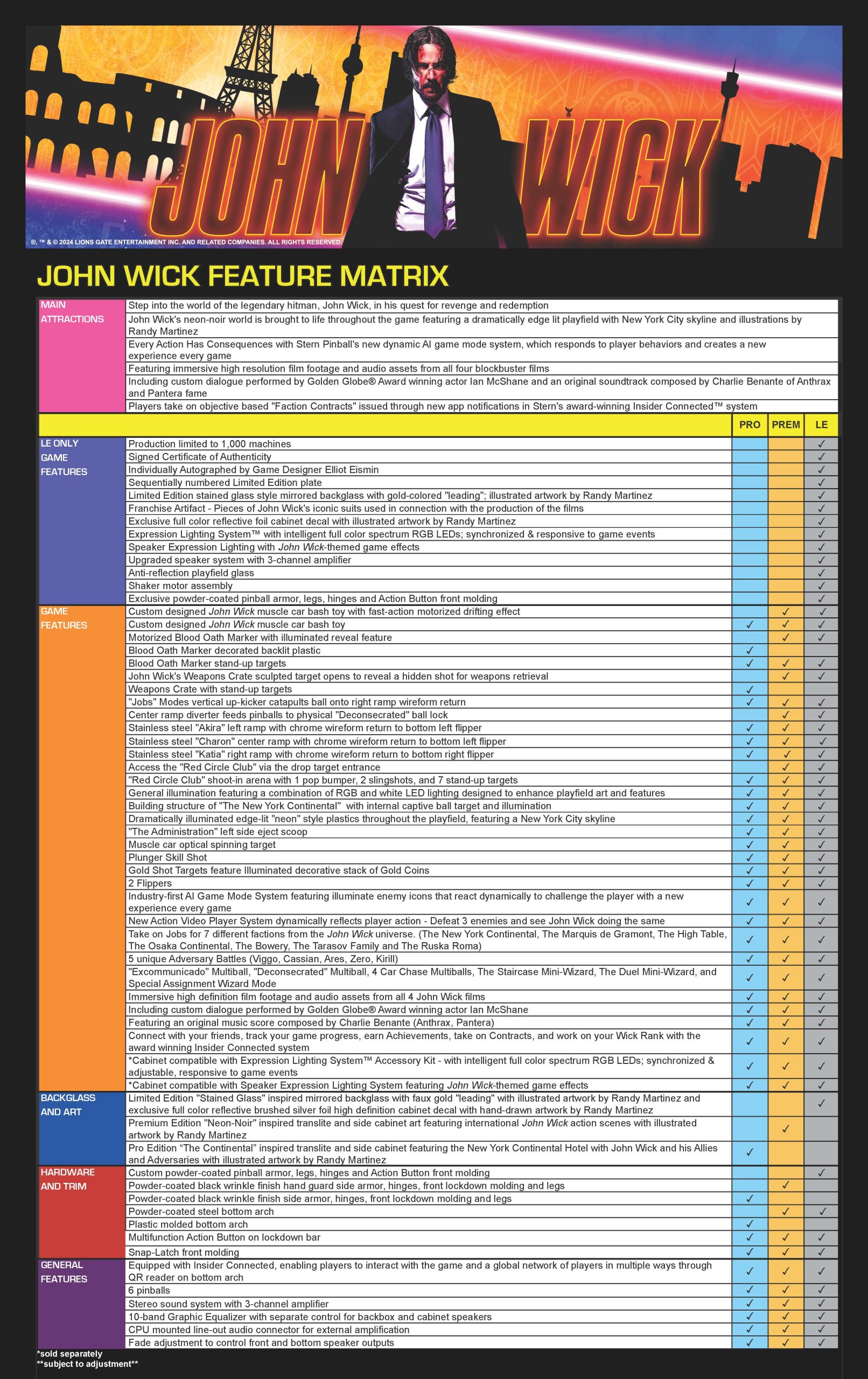 In Stern’s John Wick pinball games, players step into the role of the world’s greatest assassin as he fights to escape his past. As the titular character, players can engage in high-speed car chases and fast-action drifting across the playfield, which incorporates models and artwork inspired by iconic locations from the franchise, including the New York Continental Hotel and the Red Circle Club, all set against a dramatically edge lit New York City skyline.