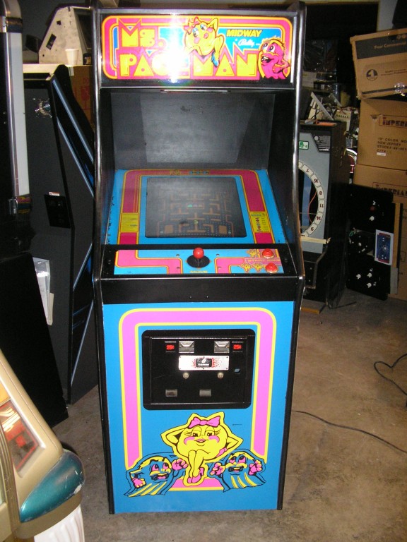 This is a reconditioned MS. PAC-MAN ORIGINAL Upright Arcade Game that has been totally refurbished and is in excellent condition. It has BRAND NEW Side Art and a BRAND NEW Power Supply for years of trouble free operation!
