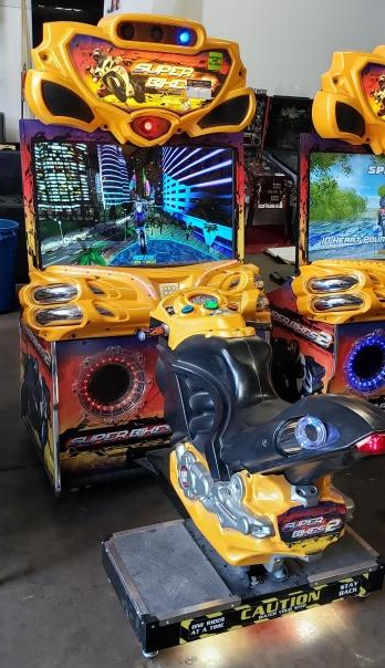 LINKABLE. Calling all bikers! Super Bikes is in Hi-Def! With a 42” LCD, 10 never-before seen tracks, all new light show and tons of electrifying effects, Super Bikes 2 will blow your mind! Race through Moab as fighter jets attack UFOs, descend into the haunted.