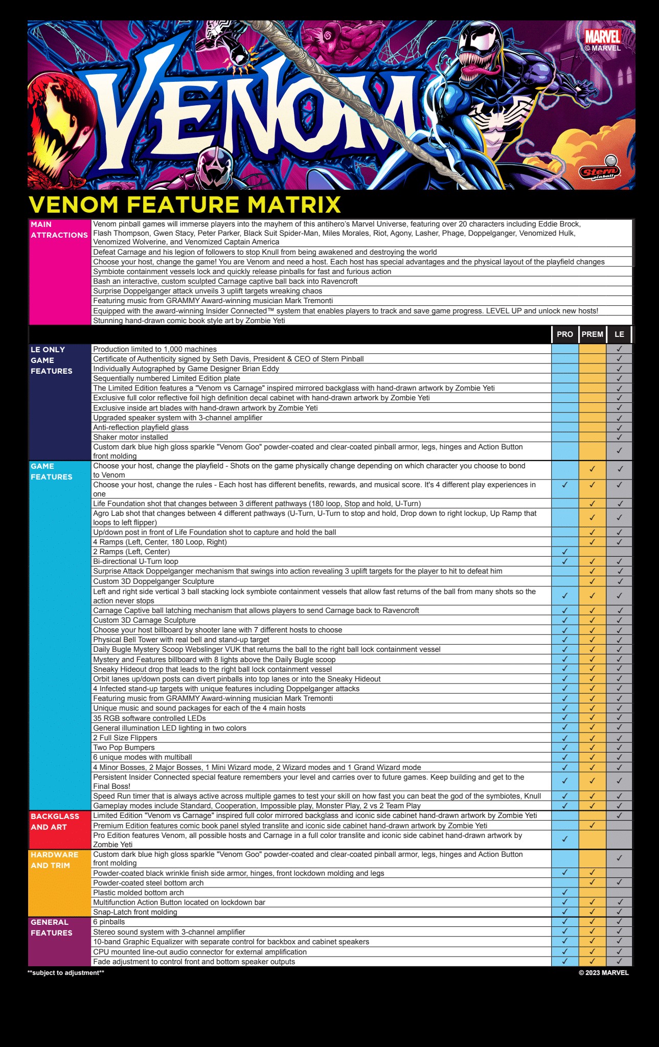 Stern’s Venom pinball games will immerse players into the mayhem of this antihero’s Marvel Universe, featuring more than 20 characters including: Eddie Brock, Flash Thompson, Gwen Stacy, Peter Parker, Black Suit Spider-Man, Miles Morales, Riot, Agony, Lasher, Phage, Doppelganger, Venomized Hulk, Venomized Wolverine and Venomized Captain America. Venom’s arch enemy Carnage is collecting Codices to awaken Knull, the God of the symbiotes. Venom must stop Carnage by battling through his army of symbiotes and the Infected to prevent him from taking over the world.